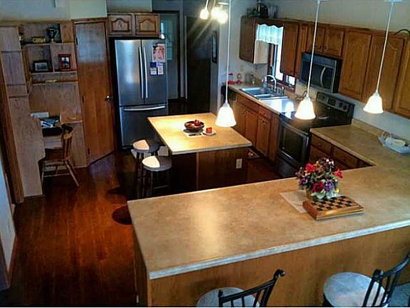 Lakefront home with 2 boat docks and fishing dock in Gated Comm. 250 Ac. Lake (tennis,pool and lodge) Property is beside the beach and has over 129' of lakefront. Lake side has covered porch, great views, firepit,concrete drive, inside 6'snackbar,newer stainless steel appliances,flooring,lighting,paint ,carpet and more. Agent/Owner