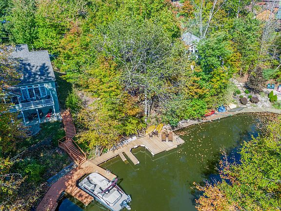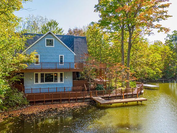 Large Lakefront home on 2 lots with awesome views on lake! Resort-like living just an hour north of Columbus and less than 2 hours from Cleveland. 350 feet of waterfront with 2 docks and beach with bonfire area. Kitchen has Granite counter tops; 3 stone fireplaces -wood and gas; Oak-pegged floors. Newly painted 3-level deck including built-in grill and refrigerator with outside lighting and safety gates. 3-car garage with 2nd floor for workshop and storage with adjacent dog run. Circular driveway with enough parking for family and guests. House is situated in a ''no-wake'' area in a secluded cove but easy access to main part of lake with great view of annual July 4th fireworks display.