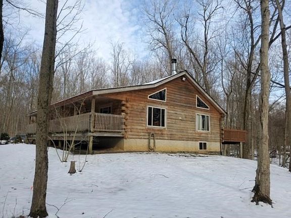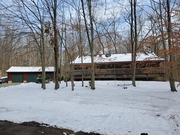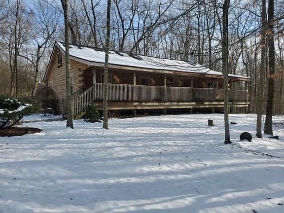 A beautiful custom built log home with 4,332 SqFt with 5 bedroom 3.5 baths. In a gated lake community. 3 car garage on 3 beautiful wooded lots. Home features a semiopen layout with a gorgeous spiral staircase and catwalk to loft. 16 foot floor to ceiling soaring stone fireplace, 2 amazing fully equipped kitchens, Living Room, Family Room, Dinning room, 5 LG bedrooms. 1st floor Master, 3 1/2 baths, Laundry Room, Huge game Room, Home Office/6th bedroom and a fabulous 10 seat dedicated Home Theater. Garage with half bath and radiant heated work bay. Docking available for boating, tubing and skiing a short drive away. You can also enjoy the full amenities at Candlewood Lake.