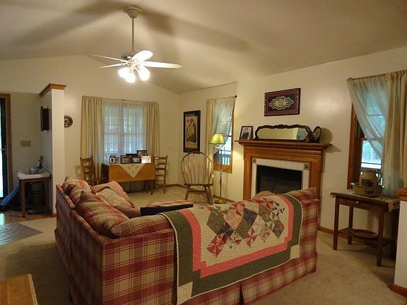 Ranch home with 3 bedrooms and 3 baths offers a full, dry, finished basement. Enjoy open living space with gas fired fireplace, spacious kitchen and dining with breakfast bar. Featuring 6 panel doors, Oak floors in kitchen and dining, full wrap covered porch, master bedroom with atrium doors to private treed backyard. 24x24 detached garage with 110 electric. Underground electric dog fence. Family room, rec room and work shop in basement - Not included in sq footage. Must see!