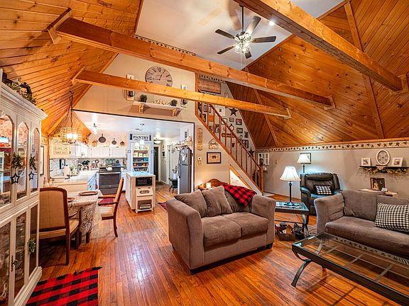 This architecturally stunning A-frame home is located on four spacious lots in the private,