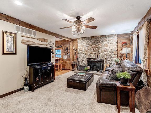 You'll love this Charming Candlewood Lake log home with metal roof. Large loft owner's suite. Second bedroom and bath on 1st floor, Woodburning Stone fireplace, Covered Front porch and Screened-in Back porch, 400 sq ft deck, fire ring, large two car garage with storage loft, privately located on two wooded lots. Candlewood Lake Amenities include fishing, boating, water-skiing, kayaking, tubing, paddle boarding, biking, nature trail walking, fitness center, swim at the beach or in a heated pool plus Tennis and pickleball. A perfect place to work from home with highspeed fiber available to every home. Living in a gated lake community is a hard to find lifestyle in Central Ohio, don't miss this opportunity!