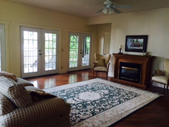 Easy care ranch with great views. Lots of lakeside decks, patios, and dock. Hardwood, tile and carpet floors, 2 full kitchens with all appliances, granite counters, fireplace, pantry, ceiling fans, gas fireplace, in-law-suite1st floor laundry with in wall ironing board. Attached two car garage with open opener.