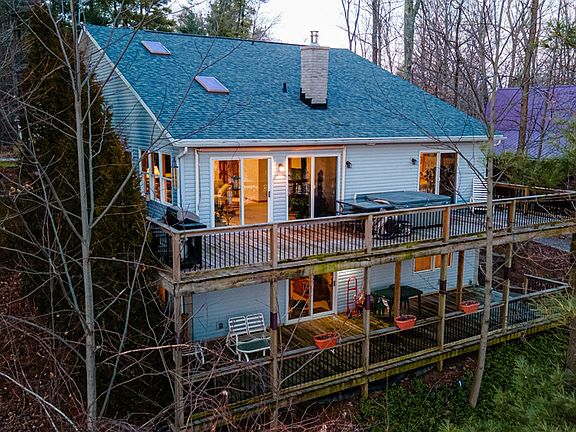 New Roof, new heat pump! One of a kind, stunning, panoramic lake views from this Candlewood Lakefront home! This home features a large open floor plan with a full kitchen, dinette, and a family room with a wood burning stove. This expansive room also features a vaulted, cathedral ceiling with full glass sliding doors opening to the large, wrap-around elevated deck with views of the lake. Also on the first floor is a separate living room, and owner's bedroom suite with a full bath and walk-in closet, plus an oversized 2-car attached garage. The fully finished, walkout lower level features a large recreation room as well as an additional bedroom, full bath, and office area. A gentle, sloped walk from the LL.