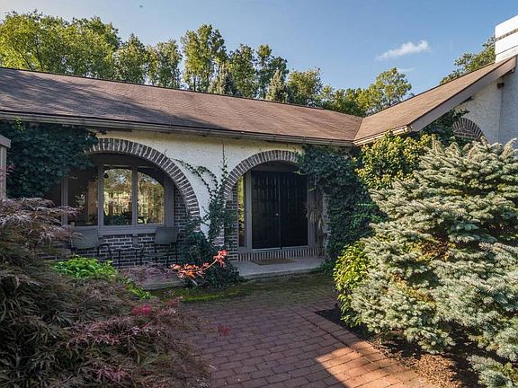 Area: Lower MilfordCome live in perfect harmony with nature in this clean, open, airy home! A drive through the woods leads you to this southwest-style home and garage, professionally landscaped and completely private. Floor to ceiling windows let you bring the outside in and enjoy the gardens from every angle. The kitchen features Terra Cotta tile floors, butcher block counter top, tile backsplash, custom cabinetry, Jenn-Air built in wall oven and microwave, Bosch ceramic 5-burner stove top, Bosch dishwasher, a skylight and bay window.The Master suite includes a great room with wood-burning fireplace and hardwood floor. The master bath is tiled with a sunken tub and bay window. French doors from the bedroom lead to the outside deck and hot tub. The guest wing has 2 nicely-sized bedrooms and a full tiled bath.The kitchen, dining room and living room flow in an open floor plan that is perfect for entertaining and gatherings. An arched doorway leads off the living room to the library, with custom-made bookshelves built in around the floor-to-ceiling windows. This room also has a floor-to-ceiling walk-in box bay window and a bay window, and cathedral ceiling with fan. From the dining room, French Doors lead you to the rear yard with a winding stair to the gazebo and upper gardens, from which a panoramic view of the valley can be enjoyed.Recent improvements include a new well pump and pressure tank, a new gas furnace with on-demand water heater, 2-zone central air with heat pumps, and numerous other upgrades. Exposed beams at ceilings throughout feature recessed or track lighting, and contribute to the overall charm of this home. The full attic is accessible by a pull-down stair. The 2-car extra-deep detached garage is built into the hill, with an entrance at grade to the large 2nd floor space - ideal for storage, a workshop, or entertaining.Great location - in the country but just minutes from 309, 78, and the PA Turnpike. Don't miss your chance to live in this lovely home in the sought-after Southern Lehigh School District!
