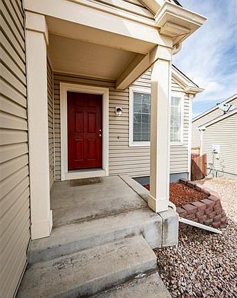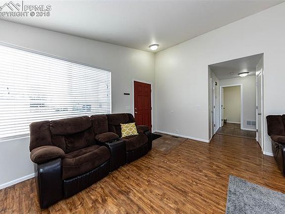 Well maintained 2 story home close to Fort Carson, I-25, shops, dining, parks and more. Featuring eat in kitchen with all appliances, large pantry and walk out to nice deck with views of the mountains. Large living room has tall ceilings, gas fireplace and nice wood floors, also has powder room on the main level. Upper level has 3 bedrooms including master with attached bath, his and hers walk in closets. Walk out unfinished basement for endless possibilities for additional living space. 2 level deck in the back yard