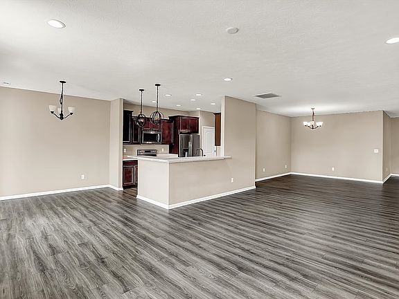 Welcome to this stunning new construction ranch, where modern design meets everyday comfort! This one-story home boasts three spacious bedrooms and two full bathrooms, offering a perfect blend of functionality and style. High raised ceilings create an airy, open feel, while thermal windows invite natural light throughout the space. At the heart of the home, the gourmet kitchen features a center island and walk-in pantry, ensuring ample storage and prep space. The formal dining room provides an elegant setting for gatherings, while high-speed internet availability makes it easy to work or stream from home. Step outside to a beautifully designed lot with curbs, sidewalks, and storm sewer systems, enhancing both convenience and curb appeal. Small trees dot the landscape, offering charm without high maintenance. With its contemporary finishes, thoughtful layout, and prime location, this brand-new ranch home is the perfect place to settle in and enjoy modern living!