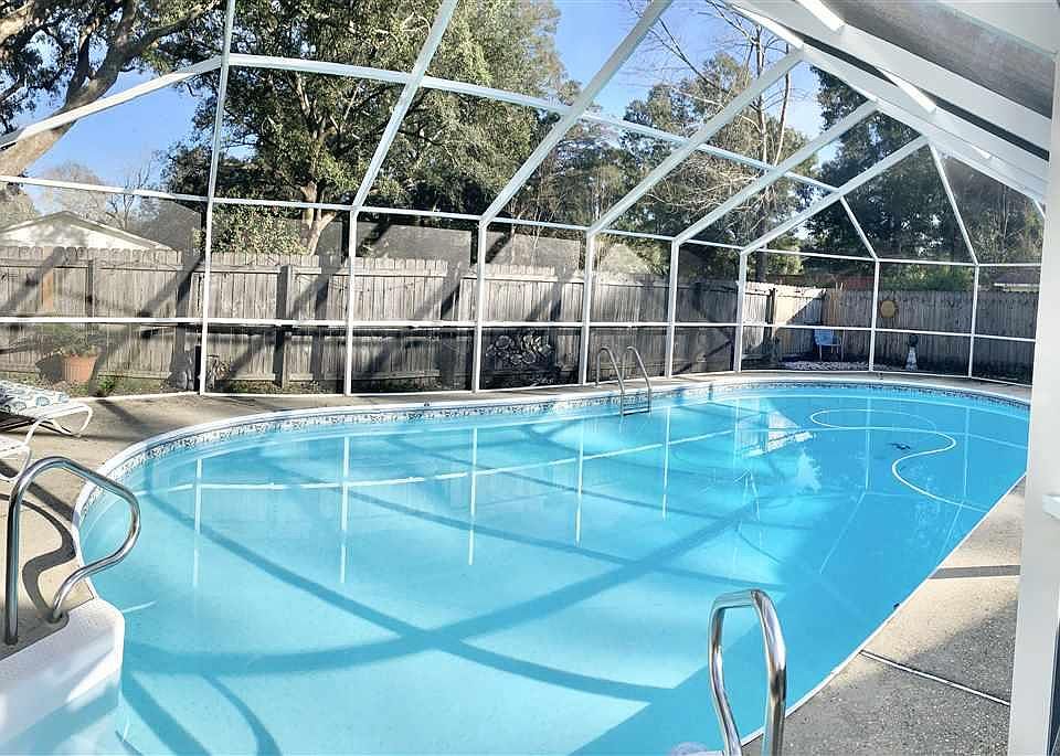 This 3 bedroom, 2 bath POOL home offers great indoor spaces and excellent outdoor features! The spacious kitchen features ample cabinet storage and open area for dining. At the heart, the kitchen/dining combo opens up to the living room and a sun room! Off the dining area you will also find an oversized bedroom with a walk-in closet and private access to the backyard. The cozy master bedroom has a full bathroom with additional cabinet space. Sharing the hall an additional full bathroom and the third bedroom TWO closets - originally two bedrooms, it that can easily be converted back to provide a 4th bedroom! The hall, living room and sun room all feature new luxury vinyl plank flooring. The sunroom provides beautiful natural light, with separate laundry room and storage area, and access to the awesome outdoor amenities! Enjoy the scenery from the screen enclosed porch, relax in the new HOT TUB, sit by the fire pit on the back deck, cook at the grilling station, or step into the detached screen enclosure to catch some sun or jump in the POOL! $37k in latest upgrades include; tile flooring, countertops, backsplash, and appliances in kitchen, new HVAC 2019, install of porch screen enclosure and pool enclosure 2019. With great multi-functional spaces and amenities..this home has so much to offer inside and out!