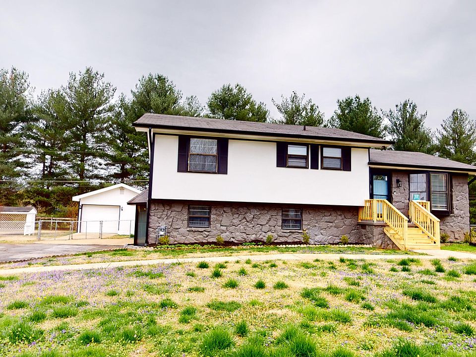 Ready to pull up to your white picket fence? This home checks all the boxes. Recently updated and ready to move in. Home has 3 traditional bedrooms and 2 baths with an opportunity for 2 additional bedrooms if buyer chooses. There is a finished office/sunroom and a den that could both be used as bedrooms. There is also a deep attached garage as well as a built-in carport under the massive deck. Don't forget about the huge detached second garage ideal for any kind of workshop you can imagine. This workshop has power, a permanent heat source, attic storage, and everything else you could want for your workspace. Could easily be finished into an additional living quarters or airbnb. As a bonus, there is the cutest playhouse in the backyard that already has power and a loft for sleeping. Perfect place for those kids' sleepovers and slumber parties. The multi-tiered deck overlooks your large, flat fenced backyard and has plenty of room for cookouts and backyard parties. There is already a designated area perfect for a fire pit and seating. Bring your pets as the yard is fenced in the front and back and there is storage for all of your toys. Agent/owner