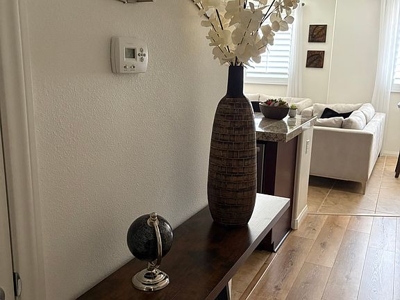 Beautiful furnished open concept 2-story 2 bedroom 2 1/2 bath with 2 car attached garage townhouse. This home features beautiful stainless appliances. A gas fireplace, One King bed and one Queen Bed. New high end vinyl plank flooring, furniture, stainless steel kitchen, gas fireplace, balcony. Open living area. Small Patio. Gated community. Patio with table and chairs. Hugh pool/spa area.
