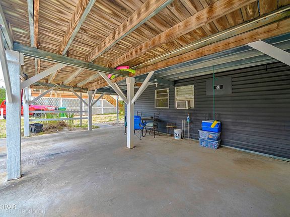 Amazing opportunity to own a charming beach home that's within walking distance to the sugar white sands of the beach, Rick Seltzer Park, and local restaurants! Don't miss your chance to own this unique home offering two properties for the price of one, making it perfect for homeowners who want to earn extra income by short-term renting one level, or would like a place for family to use when visiting. Downstairs has 1 bedroom/1 bathroom bath with a laundry room, and the upstairs has 2 bedrooms / 1 bathroom. Both living areas have a living room, kitchen, dining area, and separate hot water heaters. The spacious upstairs covered patio provides plenty of space for relaxation, for enjoying your morning coffee, entertaining, or evening sunsets, and take advantage of the attached carport for easy parking of two vehicles. The large back yard has 2 storage buildings (one has electricity and lights), room to park a boat, and an RV with hookups available. Updates include: a new roof and siding 2019, septic pumped and new filters installed 9/2024, and the upstairs bathroom has been updated. Property is being sold As-Is, seller welcomes home inspections to be performed. The home is nestled on the quiet East end of Panama City Beach, walking distance to the world's most beautiful beaches, Rick Seltzer Park, St. Andrews State Park, Schooners, Dat Cajun Place, other local restaurants, and it's just minutes from area attractions, shopping, and public boat ramps. This charming property won't last long with its unique layout and potential —schedule your showing today and make it your perfect beach retreat! All information is approximate and should be verified by buyer if important.