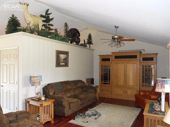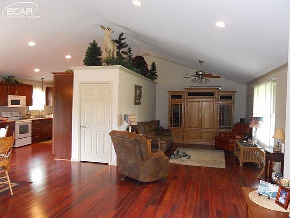 If you have been waiting to buy your forever home, this is it! Secluded 3 bedroom, 2 bath newer contemporary home with open floor plan, cathedral ceilings, wide hallways, gorgeous cherry flooring & cabinetry, 1st floor laundry, Spacious master with bath & walk-in closet. Recess can lighting, covered front porch, small pond, pole barn and extremely private setting on 27 acres. Across from Willow Springs golf course. Excellent hunting land & also a Creek on the property.