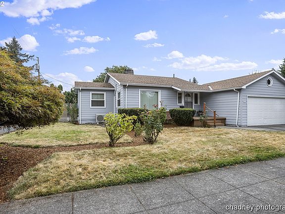 Move-in ready! Spacious fenced corner lot with attached drive-through garage and covered RV parking. Front and side yard with sprinklers, mature landscaping, and shed. Original hardwoods under carpets upstairs. Newer mini split heating/cooling, pellet stove, and ceiling fans. Large formal dining room. Kitchen fridge included. Beautiful enclosed sun porch. Great opportunities in the basement including plumbing for a possible second bathroom. Lots of storage! Near shopping and schools. Zoned CM2. [Home Energy Score = 9. HES Report at https://rpt.greenbuildingregistry.com/hes/OR10205100]
