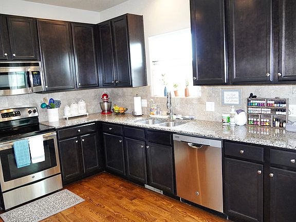 Minutes from the base, 3-car garage. Open floor plan is perfect for entertaining. Kitchen w/ granite counters, stainless steel appliances, & pantry. Wood floors in kitchen & dining. Dining walks out to patio. Master w/ walk-in closet & adjoining 5-piece bath w/ ceramic tile, double vanity, free-standing shower, & generous soaking tub. Laundry is up. Full basement, humidifier, sump pump, & fenced backyard w/ 12' x 10' patio. Near park and trails.