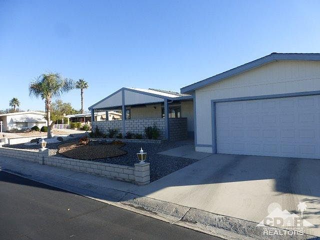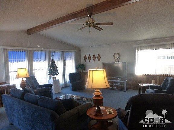 Reduced by $30,500 to sell quickly! On a Permanent Foundation for easy financing. The Corner Lot location is the first feature that you see as you come to view this property and then the Mountain Views catch your eye! The living room and formal dining area are one large great room with a cathedral ceiling. The informal eating area is off the dining room and kitchen and features a mountain view. Down the hall from the Great Room is the laundry area. The guest bedroom and bath and master suite are at the end of the hallway providing privacy for both you and your guests. A sliding glass door leads you to the walled patio. The two car garage is off the patio for convenient parking and plenty of storage. The floor plan of this home is a entertainers dream or just a great place to relax and enjoy Desert Living at it's best. No more changing propane tanks as the BBQ has a natural gas hook up.
