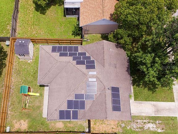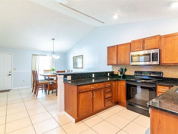 Wonderful! This home has been lovingly extended and upgraded. Step through the front door into the open dining room and gorgeous updated kitchen, including granite counters, solid wood cabinets, double under mount sink, and tiled backsplash. NEWER APPLIANCES!! Plenty of cabinets and storage. The high ceilings also have recessed lights. Much of the home was upgraded with the addition in 2007, including 3 dimensional shingle roof, and dual pane doublehung windows on the front of the house (bedroom and living room). NEWER AC!! The master bedroom is huge, with walk in closet, with plenty of space for your bedroom set! The ensuite includes newer cabinets, dual sinks and shower. The large family room includes pre wired for surround sound. Fans, many of which are newer, are installed throughout, including the covered lanai. This overlooks the fenced, flat yard, perfect for relaxing and entertaining. The Utility Shed conveys with the sale. Water softener and water filter are rented. The home is pre wired for an alarm system and currently installed system stays with the house. The garage was converted to additional living space, providing a wonderful flex space, it could be used as a den or bonus room. Laundry room is inside. ***NO FLOOD INSURURANCE***