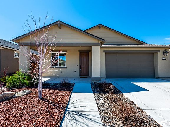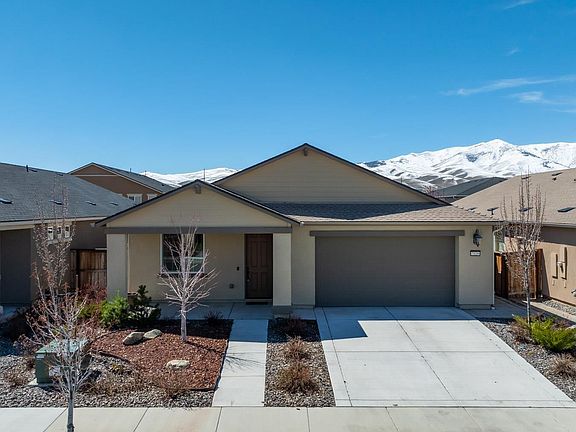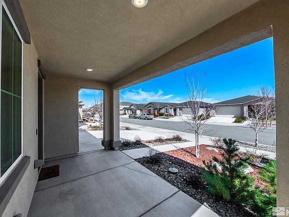Look no further, this is where modern comfort meets functionality! This single story home enters into an inviting foyer that leads into a multi functional den, office or formal dining room. The upgraded tile porcelain floors give the illusion of wood but are very durable. The heart of the home is the kitchen and great room. The open living area provides lots of natural light and higher ceilings. The kitchen features a large island, double sink, gas stove, refrigerator, microwave and a brand new dishwasher., Pride of ownership shows in what feels like new throughout. The spacious pantry allows for lots of storage. The primary bedroom has brand new carpet and an en suite bathroom with double sinks, shower, tub and a walk in closet. The well maintained landscaping all around the house features shrubs, roses, an Australian pine tree and Red Twig Dogwood all on full drip system in front and back. Brick pavers and retaining wall with built in bench offer the perfect spot for a fire pit install. Enjoy your afternoons on the large patio, protected by a privacy fence with rose vines that grow naturally along the fence. The 2 car garage features a Rain Bird irrigation system along with a tankless water heater. Minutes from restaurants and shopping, 20 minutes from the Reno-Tahoe airport and only 45 minutes away from Lake Tahoe.