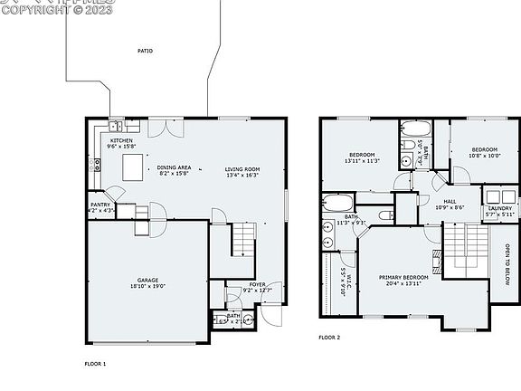 Prepare for easy living in this well appointed, 2-story home. Living room, dining area and kitchen reflect an open concept making entertaining a joy. Stainless steel, kitchen appliances and garage refrigerator stay! Fireplace (electric) in the living room stays. Main level has a half bath and coat closet tucked just to the side of the front entry. New carpet in all bedrooms! Primary bedroom with an ensuite bath is upstairs. Second and third bedrooms are nearby with a full bath in between. Laundry is a breeze with a dedicated room on the 2nd level. Walk out access to the cement patio with a paved walking path around the yard to the front gate. There is a grassy area and a small dog run on the opposite side of the back yard. Outdoor canopy stays with home which makes a great area to sit and BBQ while enjoying the flowers and trees. Fenced in, backyard with lots of privacy. Great neighborhood and location to amenities. Elementary and middle school bus stops right on the corner for District 49.