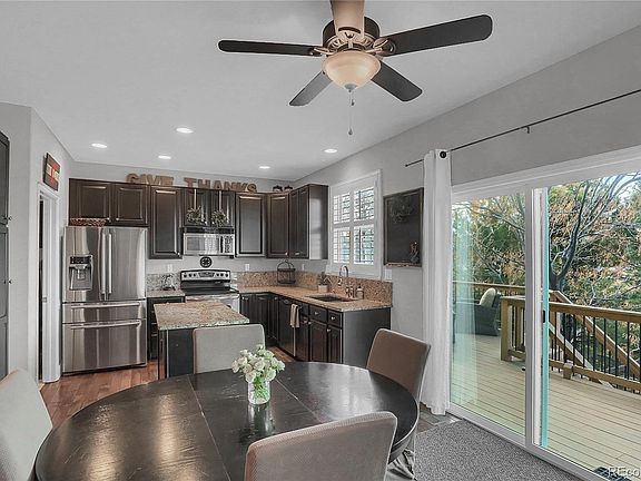 Beautifully maintained two story home with finished basement backing to trail and open space. Hickory hardwood lines the floors on the first, and second floor and new carpet runs throughout finished basement. Exquisitely remodeled kitchen w/ huge center island, stainless steel appliances and granite countertops. Breakfast area opens to expansive trek lined deck with canopy tree coverage (Trex=NO maintenance!). Fabulous great room showcases a newly remolded stone fireplace and custom corner built in. Grand entry way opens to the dining room on the left and an office/spare room with French doors to the right. Warm and inviting master suite with attached retreat, (Can be used as a fifth bedroom option) includes walk-in closet and HUGE spa tub. Upstairs also includes 2 additional bedrooms with TONS of closet space and another full bathroom. Walk-out level offers a huge bonus room with fireplace and additional storage, opens to covered patio leading to fully fenced yard. Basement also includes its own bedroom with 2 closets and full attached bathroom. Large three car attached garage. Located two and a half blocks from Buffalo Ridge Elementary School this would be a match made in heaven for anyone with young children!!! Option to include furniture left in home. Please contact agent for list of items and any questions.