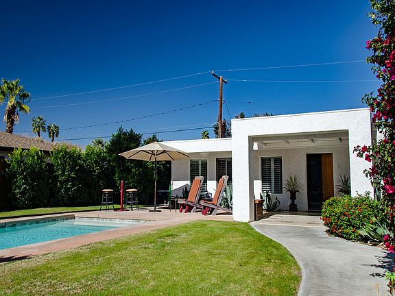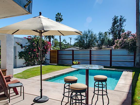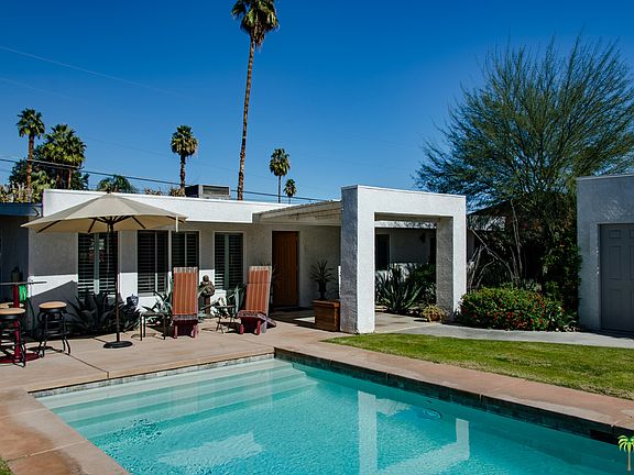 Rare opportunity to own one of the nicest homes in Palm Desert. Walking distance from El Paseo, Civic Center, COD and the McCallum Theater. Simplicity and Linear quality define this 3bed/2bath Mid Century Home. This home has undergone extensive renovation which includes electrical, plumbing, energy efficient windows, roof, pool and all surface finishes throughout, including LED lighting. The property has total privacy with the bonus of a Iconic front loaded pool. The inviting entrance welcomes you into a bright open floor plan, as well as multiple intimate outdoor spaces to relax and entertain your guests. Everyone will want to hang out in the kitchen and casual dining area with sliders out to the intimate side yard with a comfortable seating area. This charming home features a master bedroom with French Doors that open onto a manicured private patio. This is a MUST SEE HOME!!