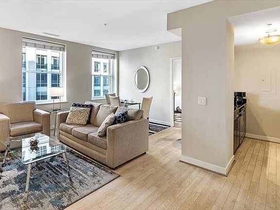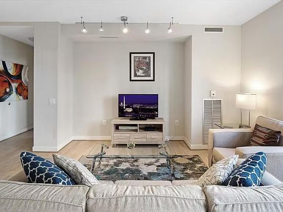 Experience luxury living just steps away from the White House in this elegant apartment located in the DC Financial District. With designer kitchens, hardwood floors, and premium furnishings, this apartment offers a sophisticated lifestyle. Enjoy the convenience of an in-unit washer/dryer and the stunning rooftop terrace, all while being just a block from the White House and the U.S. Treasury building. This apartment is designed for both comfort and convenience, featuring limed oak flooring, granite countertops, high ceilings, and large windows with beautiful city views. The fully equipped kitchen includes GE stainless steel appliances and granite countertops, while the living space is furnished with premium bedding, towels, cable TV, and Wi-Fi. The building offers a range of amenities including a business center, fitness center, and a penthouse clubroom with a demo kitchen. The rooftop terrace provides stunning views of the Monument and is equipped with Wi-Fi. Pet-friendly policies allow you to bring your furry friends along. Perfectly positioned to explore the DC Financial District, this apartment is just across the street from the Metro station, offering easy access to world-class museums, galleries, theaters, and entertainment. The National Mall and other iconic landmarks are just steps away, making it an ideal location for experiencing the best of Washington, D.C. The rooftop terrace closes at 11 PM. Check-in is available after 4 PM and checkout is at 11 AM. Self-check-in is facilitated with building staff, ensuring a smooth arrival and departure process. The apartment includes a sleeper sofa in the living room.
