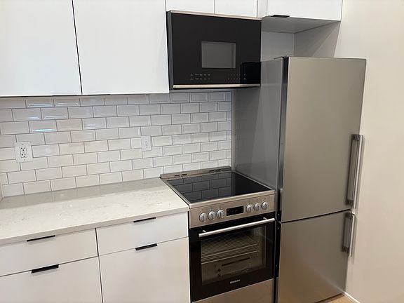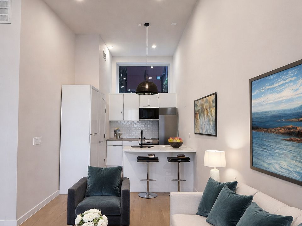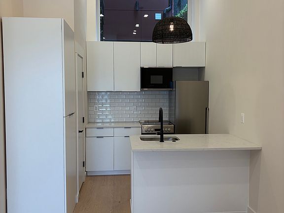 This bright and stylish unit features exceptionally high ceilings that create an open, airy feel rarely found in a studio. The modern kitchen is equipped with sleek cabinetry and contemporary appliances, perfect for everyday living. Enjoy the convenience of a brand-new washer and dryer in the unit. A great opportunity to live in a beautifully updated space in a prime location.