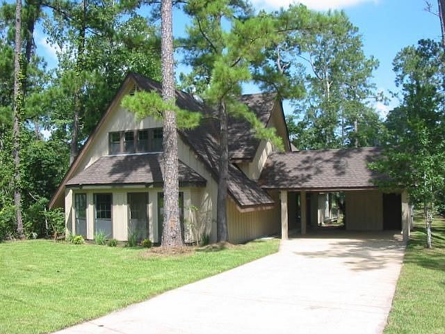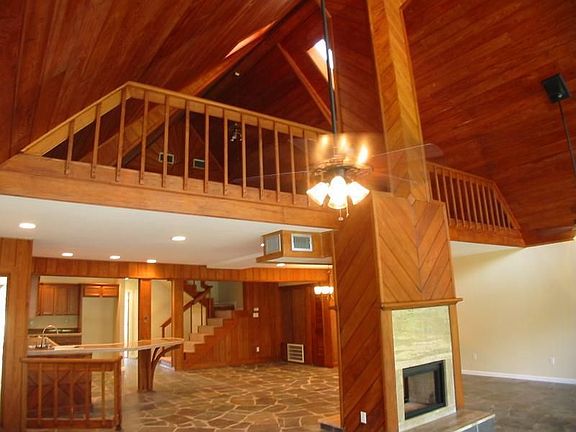 VIRTUAL TOUR LINK BELOW! Mountain hide-a-way on a Mississippi pond! Very unique A-frame style home, mill work is incredible, old world quality, ground floor open to pond, 2 bedrooms, 2 bath down, master suite up, large loft, 2 story double side fireplace, watch blue heron & wildlife on pond, good location!