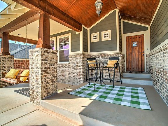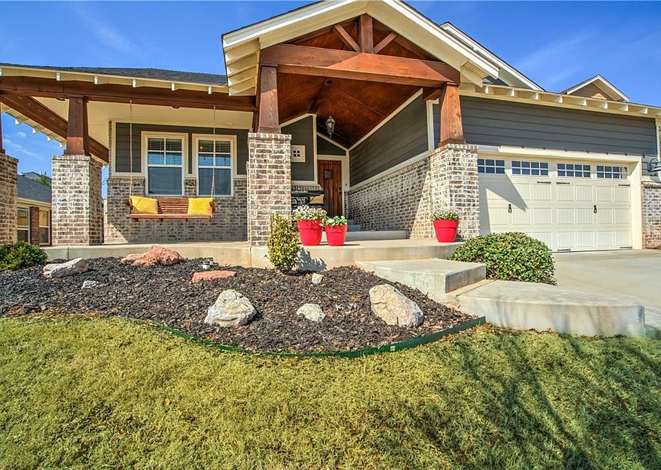 The most charming Craftsman Bungalow you've ever seen! Tucked away in the beautiful Arbor Creek community, this home has a huge presence with the enormous wrap-around porch. You'll swear the house is twice it's size! Inside, the home is light, bright and open. Tall vaulted ceilings and an open kitchen/living room concept make the home feel spacious and cheerful. Large breakfast space will fit a farm table or large square table. Kitchen features white cabinets, subway tile, granite countertops, stainless steel appliances and a window over the kitchen sink. This custom built home has 3 bedrooms - master on the opposite side from the 2 secondary. Utility room next to the master. Hardwood floors throughout - no carpet. Large backyard with a covered back porch, sprinkler system and gas for your grill. Easy walk to both parks or Lake Arcadia walking trails. Exterior siding is cement fiber board - termite and fire resistant with almost no maintenance. Welcome home!