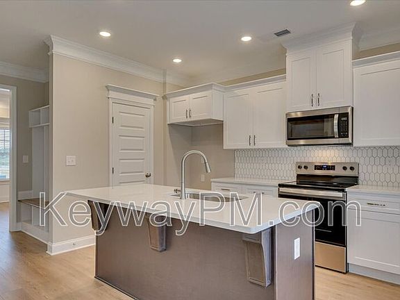 FIRST MONTH FREE- please ask for details! Available NOW! Brand New! Ask us how to get in to this home with $0 security deposit! A luxurious 3 Bed, 2.5 Bath townhome. Molding and exquisite trim detailing on all windows, along with Crown Molding adorning the kitchen, great room, and Flex/dining room. Kitchen shows its elegance through the open layout, quartz countertops, oversized island, Designer Backsplash, and Stainless Steel appliances. Natural light floods the spacious great room. The luxurious owner's suite with a large designer walk-in closet, an En-suite with a Tile Surround Shower, Double sink vanity, Decorative framed mirrors, and Ceramic Tile flooring. Two serene bedrooms and a second full bathroom upstairs. Each bedroom offers plush designer carpeting with an upgraded pad thickness. Enjoy your fenced rear yard from your covered back porch. Total electric! Pets under 50 pounds allowed with approval and monthly pet fee. Breed restrictions apply. Visit our website for breed restriction information. HOA covenants applicable. Pictures depict layout only, view for current colors/condition. All information contained herein deemed reliable but not guaranteed. School zones must be verified as they are subject to change.