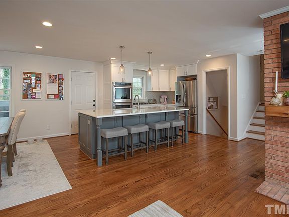 Beautifully updated & open floor plan within walking distance to North Hills! 2016: new carpet, paint, refinished hardwds, Elfa closet systems + upgraded KIT w/double ovens, huge island w/quartz counter tops, new cabs, lighting. 2019: updated master BA. Living rm, kit, dining rm are all open w/wood burning FP. Lg laundry rm, 3 full BAs, 2 attic storage spaces, whole house fan, fenced backyard, deck, patio & covered front porch. Home shows great! Walk through video in pics w/QR code or Virtual Tour link!