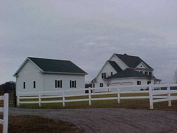 Custom built home w/formal areas, wood columns, lots of glass (awesome views), custom kitchen w/brkfst. area, hardwood & tile floors, open balcony, 4BR/ 3.5BA on 2 levels, + fin. bsmt. w/1BR 1.5 BA, family room, rec. room, wet bar, exercise room. Built-in sound system, Solid wood doors and wood trim, built-in bookcases in living room,two 80 gallon water heaters, two - 200 amp breaker boxes, att. 2 car garage plus detached 2 car garage w/oil changing pit. (both garages are heated). There are An derson windows throughout and Sealstone counter tops; MB has trey ceiling, dbl vanities, whirlpool tub and Body Spa shower. There are 3 CH&A units w/air purifiers. Very, very economic utility bills. Circular drive. House is on a 1.6 acre fenced-in area with a beautiful farm view surrounding it.