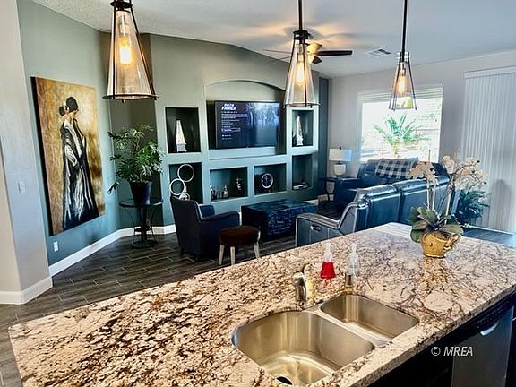 Amazing views overlooking 7th fairway and the valley of Mesquite, This 3 bedroom 2 bath Features: Beautiful entry courtyard, Large open floor plan with ample window to complement the views of the golf course & the Mesquite valley, Built-in BBQ overlooking the Palmer golf course, Granite throughout, Garage was widened from the original plan, fully landscaped backyard w/putting green, Home comes furnished, This property is in the Vista's HOA with access to pool/spa, tennis courts, pickle ball court, Horse shoes, food service.