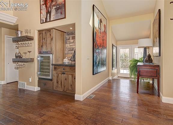 Picture your dream home w/spectacular Mtn views, adjacent to the Broadmoor Hotel, in a prime location within the highly desired, gated Broadmoor community. Step into a magnificently appointed & completely renovated home w/exquisite, quality finishes throughout. French doors lead you into the front foyer w/an artist tile floor. Step up to a gorgeous wood floor entry that takes you into a fabulous Dining Rm/Great Rm w/vaulted & beamed ceilings. The elegant Dining Rm features a custom wine bar w/built-in wine fridge to entertain your friends & serve your favorite cocktails. The Great Rm has a gas fireplace w/raised hearth & stone surround. Walkout to a private courtyard w/fire pit & enjoy commanding Cheyenne Mtn views. The gourmet island kitchen boasts tile floors w/radiant heat, abundant cabinetry w/quartzite countertops, a counter bar, large pantry & closet, & European coffee bar. Newer appliances incl a 36' induction cooktop, double ovens, warming oven, dishwasher, & French door refrigerator. A 2nd courtyard off the kitchen has an outdoor kitchen & dining area. ML Laundry w/washer & dryer. The updated MBR features neutral carpet, an attractive light fixture, lrg window w/seat to enjoy beautiful views, & adjacent shower bathroom. The luxurious master bathroom hosts a tile floor, gorgeous dual sink vanity, framed mirrors, & tiled spa shower w/frameless door. There is a 2nd ML BR & shower bathroom. Heaters in both ML bathrooms. The finished basement has a huge Family Rm, Media Rm w/built in workspace, a Craft Rm, Storage Rm, & amazing Wine Rm. There is a 3rd BR w/attached shower bath perfect for guests. Addtl amenities include a new roof, central air, & humidifier. There are newer drapes, sheers, shades, upgraded sliding doors, French door, & new Anderson windows on the ML. There is also solar film on south-facing skylights, doors & windows. 2-car attached garage w/storage & door opener. Beautifully maintained, low maintenance, turn-key home in move-in condition.