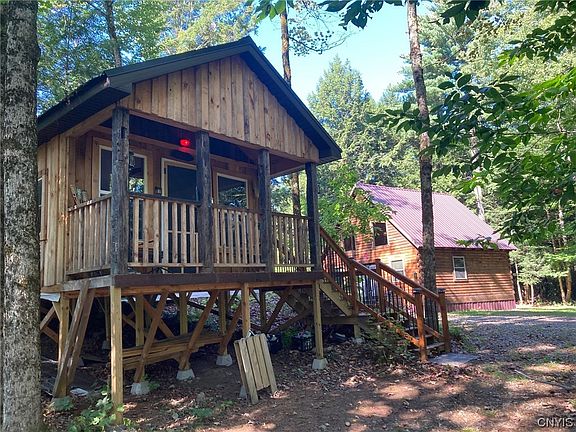 MOTIVATED SELLER! Two cabins,7.14 acres near Kasoag Lake, w private right-of-way to Kasoag Lake! Perfect for lg groups. Primary cabin(864sf) fully functional for year-round living. Second cabin is wonderful for spillover of friends, family, kids, & grandkids. Custom-built with timber gables; living/dining/kitchen area, 1st-fl bath, & bedroom loft. Log post & railings, hardwood floors, antler chandelier completes the look of this wooded paradise. Cabin2 w/ front & back porches, framed unfinished bathroom, & area for new owner to finish kitchen/living. Two sheds. Secluded in the woods, some post & rail fencing, new gravel driveway. Primary cabin has well, septic, electric & primary heat source, move-in ready. Cabin2 (392sf) is hooked up to well & electric. With a few finishing touches, this will be move-in ready too. Direct access to Oswego County ATV trails(over 109 mi).Near C4 snowmobile trail. 10 min to Salmon River (World Class Salmon, Steelhead, Brown Trout Fishing). 10 min to Redfield Reservoir boat ramp. 20 min to Lake Ontario or Oneida Lake. Walk to Kasoag State Forest for hunting Northern Zone bucks, turkey, grouse, snowshoe hare. Best area in NY for the outdoor enthusiast.