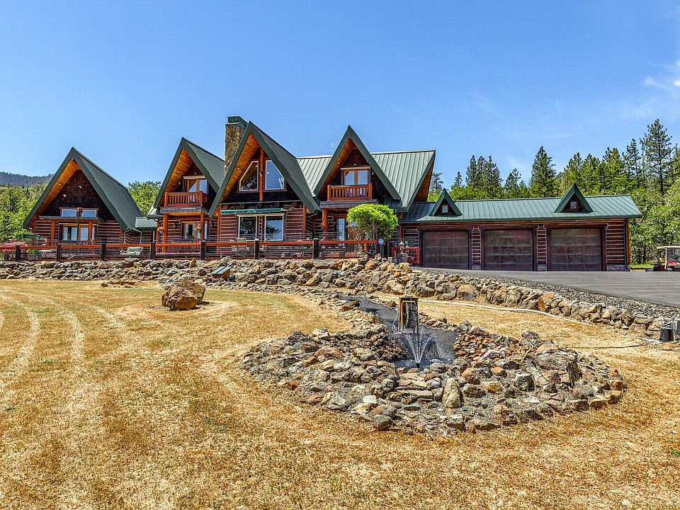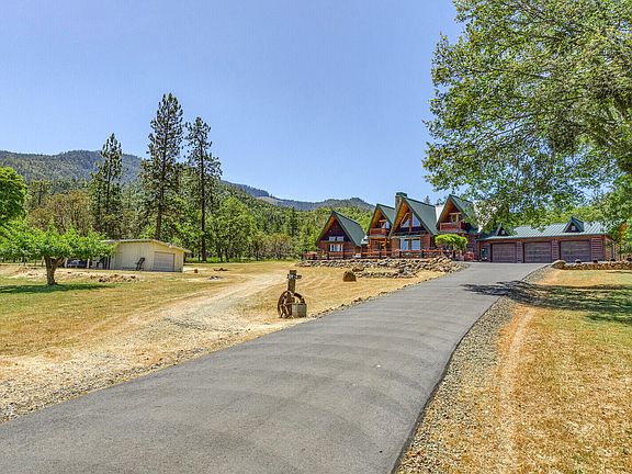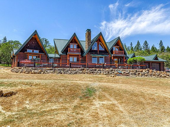 Truly, a one of a kind home! This unique design and sophisticated layout provide amazing Country living at its finest! The grand main level master has vaulted Cedar ceilings, a large walk-in closet, beauty bar, laundry room, a sitting area & French doors to the outside deck. The en suite bathroom has marble flooring, a marble step-in shower, dual vanity and a bidet. Both upstairs bedrooms are junior suites w/ 2 closets & a private deck. A true Chef's kitchen w/ elect cooktop, dual ovens, built-in refrig, wine refrig, wet bar and pantry. The Madrone, Cedar & Douglas Fir featured throughout the home are harvested straight from this property! There's a detached shop w/ lg covered porch/ carport & single car garage. RV hookups, 3 car garage, lots of wildlife and VIEWS GALORE! 3 adjoining taxlots available with marketable timber, seasonal creek ,meadows, outbuildings and a cabin for a total of 80 acres! See attachments & come view!