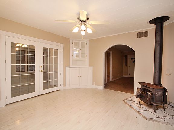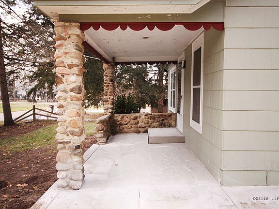 What a Charmer of a house, lots of cabinets in kitchen, new back steps, New flooring, Bathroom neat clean new toilet, Nice yard, four season porch, can shut if doors if not needed, has French doors, lots of natural light, The garage has a one car door, but this is a surprise inside, has second floor, work shop area, sliding doors to inter the back, So many uses for this building, Front porch is open with stone pillars, new finish of concrete, reach for that rocking chair,