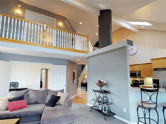 Spacious waterfront home in desirable Hidden Harbour area w/open & flexible floor plan. Plenty of vaulted clngs, ledges, overlooks & skylights. Relaxing lake views from great rm, kitchen & sun rm, retreat size master suite, awning covered deck & dock platform. Possible 3 bdrms on 1st fl-each w/adj. bath. Plmbg is roughed in for a fut. full bath in bsmt. & fut. addtl half bath on 1st fl.