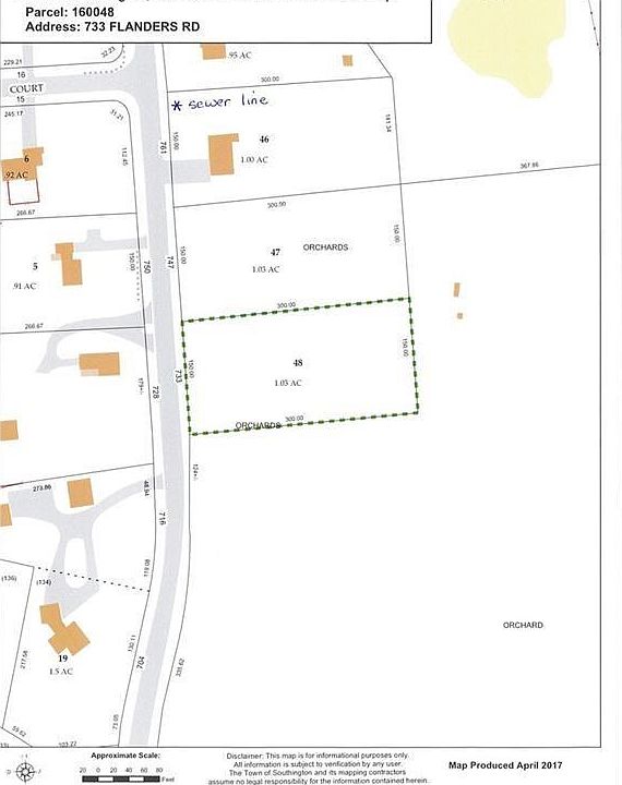 Build your dream home in a desirable area of Southington on just over an acre of land. This lot is level topography with apple trees. Public water is available and public sewer is on the street at the house two doors down (285'. Buyer due diligence. Natural gas is on the street also. 747 Flanders Rd is also for sale-it is also a 1 acre lot. Buy both and build your estate.