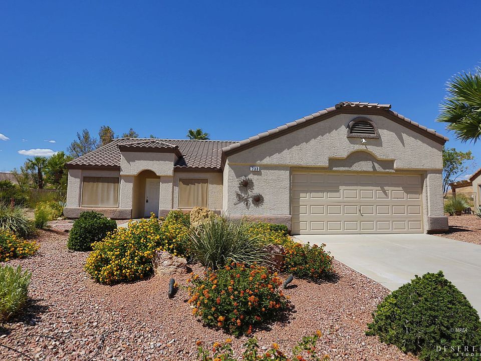 "Premier Showcase Location" .... quite possibly the LARGEST GOLF COURSE LOT with a single family home on it located in the Gated Community of SUNSET GREENS. Beautifully designed desert landscaping surrounds this home on a "fan shaped lot" offering immense privacy. Spacious covered back patio has a tiled wrap around bar and built-in BBQ. Covered back patio extends the entire length of the home with views of the golf course. "ONE OWNER HOME" with impressive upgrades throughout. Living Room and Family Room has a larged wood exposed beam that joins the two rooms at the climax of the vaulted ceilings. Slate accented columns and pony walls add flair. Kitchen has no expense spared: KitchenAide Refrigerator (oversized) with rich custom cabinentry. Tiled floors start in entryway and flow throught the living room, family room, kitchen and bathrooms. VIEWS of golf course are yours from the kitchen, dining and living room. Garage is OVERSIZED ( 2 1/2 car garage ). Room for your razor or golf cart. HOA has two swimming pools, hot tubs and walking trails. Residents enjoy discounted golf (50% off) at Casa Blanca. Pre-escrow has been opened with Stewart Title.
