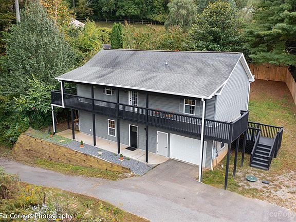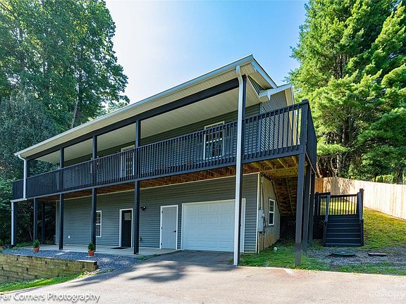 Lovely home in Fairview with short-term rental history perfect for a turn-key investment or stunning primary residence. Kitchen boasts a tile backsplash, granite countertops, stainless steel appliances, farmhouse sink and plenty of storage in kitchen island and pantry. The living room features a stunning slate accent wall with recessed electric fireplace. On the main level, you'll find the primary suite and two additional bedrooms. Versatile bonus room downstairs could easily function as 4th bedroom. Downstairs is a spacious family room, complete with separate entry, wet bar with aquamarine tile backsplash, and tile floor throughout. A wraparound deck spans full width of home - covered porch in front with mountain views and sounds of nearby stream, huge back deck with plenty of room for relaxing. Just 10 minutes to Fairview area restaurants and breweries, 15 minutes to Blue Ridge Parkway, 20 minutes to Asheville. Furnishings negotiable; see features sheet for details.