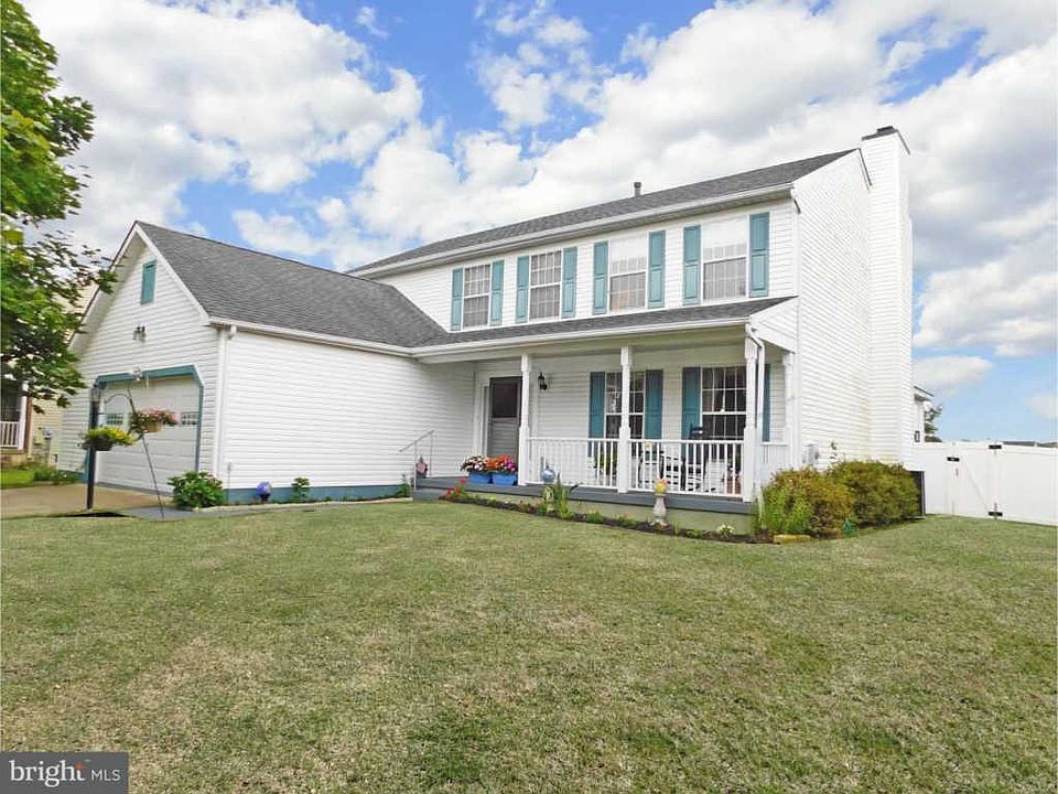 Recently updated and revamped Center Hall Colonial. 4-bedroom, 2.5 Bath, 2 car garage, full walk out basement, front porch. Enter home to a hardwood, two story foyer with soaring ceilings. Windows in the foyer overlooking the chandelier have been replaced with picture windows by Anderson! Walk through the foyer, into a spacious eat-in kitchen with new marble tile flooring. Half bath and Laundry room /mud room off kitchen area also have marble flooring. Living room has crown molding, off of the entryway foyer offers two windows and plenty of natural light! Step into the Dining room which has hard wood flooring and boasts crown molding, chair rail and bow window as well! Warm inviting larger family room with brick gas fireplace, ceiling fan and French doors leading to custom four-season sunroom with dedicated gas fireplace heating unit. Fenced in backyard features an oversized custom stone paver walled patio which overlooks open field with tennis courts in the rear of home. Charming storage shed on site. On the Second floor, you will find all 4 bedrooms, a real plus for any family! All windows on the second floor have been replaced with Anderson renewal windows in 2019. Warranty transferrable to new owners! The second floor boasts a master bedroom featuring a vaulted ceiling with 2 large walk-in closets, a large master bath with marble tile flooring. In the master bath, relax in the spa-like large soaking tub. There is even a shower stall and vanity. Three additional nice sized bedrooms with full hall bath and linen closets complete the upper level. Full unfinished basement, bring your ideas. Large driveway with a two-car garage with attic storage. HVAC replaced in 2019. Fantastic location, minutes from Route 38 and Route 206. Close to JBMDL, and all of your shopping and dining needs!