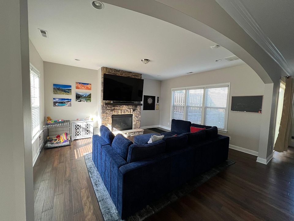 The (optionally furnished) primary bedroom with a queen bed and nightstands features a 65" TV, 2 windows and a large walk-in closet. The (optionally furnished) guest bedroom has a queen bed and nightstands features 2 windows and a large walk-in closet. There is a private bathroom with a tub shower and available with plenty of storage. There is a private bathroom with a standing shower, hot tub, and available with plenty of storage. In the living room there is a large 85" TV (with cable) with a large central couch and gas fire place. The kitchen is excellent for cooking with an enormous island and a 5 burner stove. There is dedicated pantry and refrigerator space with plenty of storage in the kitchen. A large washer/dryer is available. There is a small backyard with a patio. Any device connected to the Wi-Fi will have cable access. Primary bedroom dimensions: 16.5' x 19.5' Closet dimensions: 10.7' x 3.6' Guest bedroom dimensions: 11.5' x 12.5' Closet dimensions: 9.5' x 5.3' If the lease is terminated early, an additional month of payment is required. The tenant is fully responsible for damages. No pets and no smoking.