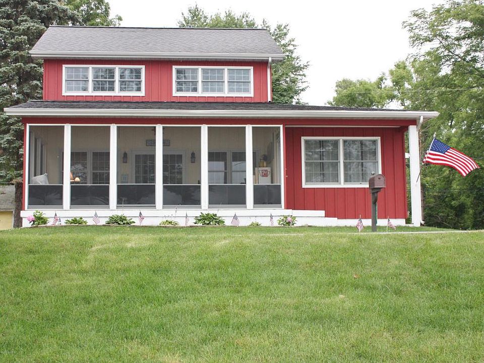 COLDWATER LAKE HOME! This home is so full of charm and character. Built in 2001 to resemble an old charm look from the wood flooring, stone fireplace with gas insert, wood doors with latch type handles, and unique ceiling angles. Throughout the upper level you will find white washed knotty pine ceilings and walls with a newly updated bathroom with double sinks. Both upper bedrooms have a great view of the lake. The main level of home has a very comfortable open feel. The kitchen is nice and ro omy with updated stainless steel appliances. Large dining area for entertaining. Cannot forget to mention the amazing front porch with new brick flooring and Eze Breeze Sliding Panels. Home is just worth the money to view the breathtaking sunsets! Part of the garage has been converted to a bar big enough to entertain all your guests and neighbors with drop down sides to bring the party to the backyard or bonfire. Huge unfinished basement of 1056 square feet. Call today for your personal showi