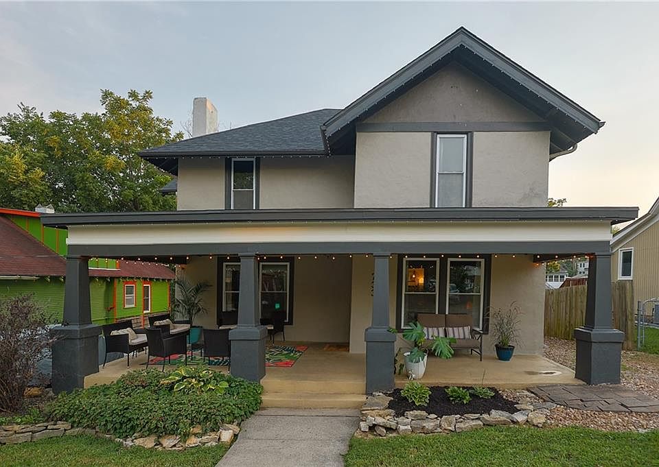 Step into timeless character and classic charm with this 4-bedroom, 1.5-bath two-story home located in the heart of Excelsior Springs. Built in 1920, this beauty showcases original oak trim, gorgeous wood floors, and a stunning staircase that adds historic appeal. Enjoy cozy evenings by the fireplace in the inviting living room, and the convenience of main floor laundry just off the kitchen. Outdoor living shines with a covered front porch, a spacious back deck, and a patio area perfect for entertaining or relaxing. Plus, the home features permanent programmable exterior lighting, giving it that perfect glow year-round. Don't miss your chance to own a piece of Excelsior Springs history with modern touches and unbeatable charm! Home a roof that is only about 3 years old, detached garage/storage with off-street parking space. Sellers have made many improvements that will certainly be enjoyed by the new owners.