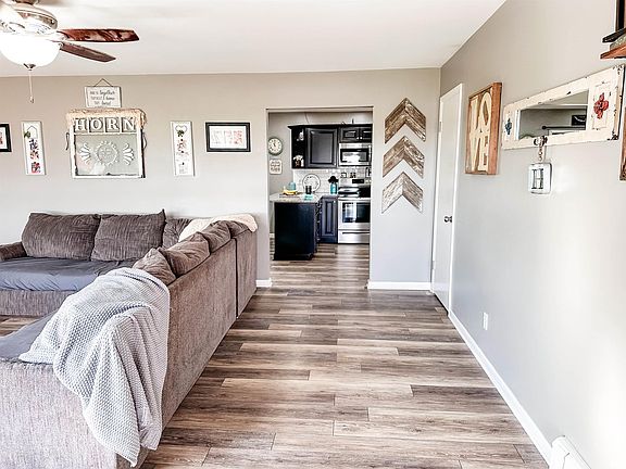 This brick wrapped ranch has it all! A stunning 3 bed 1.5 bath that has been meticulously remodeled. Step into the large living room that boasts large windows and plenty of natural light. The kitchen/dining room were completely remodeled in 2019 featuring granite countertops, new vinyl plank flooring, beautiful black cabinetry, stainless steel appliances, and new drywall and electrical. The wood-burning stove and tile platform were installed in 2021. New AC unit, duct work, outlets/switches, and living room flooring in 2020. New metal roof and upgraded 200 amp electric panel in 2021. And to top it all off this home sits on 3.98 acres of open space that features a large 64x32 pole building, an apple tree, flower blooming trees, and beautiful sunsets.
