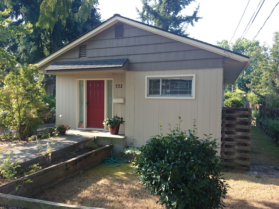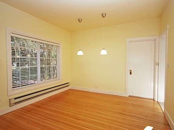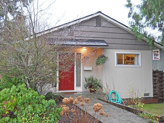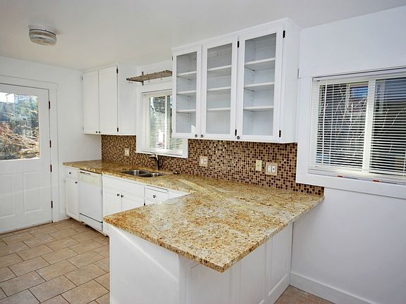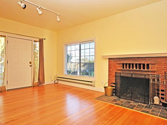 This 1911 rambler welcomes you with light filled rooms & updates throughout. Gleaming wood floors. Living room with adjoining dining room features beautiful brick fireplace, picture windows. Remodeled kitchen boasts granite counters, breakfast bar, mosaic tile backsplash, and ample cabinets. Spacious bath features ceramic tile & designer colors. Huge entertainment sized deck overlooks sunny south facing yard, great for gardening, plus mature fruit trees and raspberries. Wonderful neighborhood.