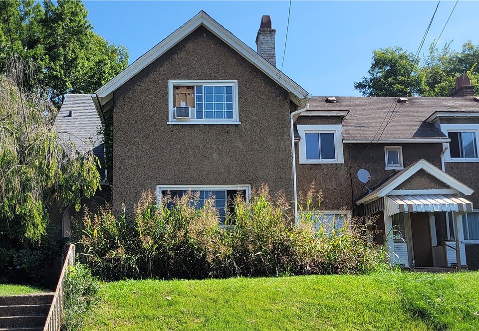 Great starter home and ready to MOVE IN! Freshly painted interior, new floor in foyer and bathroom AND COMES WITH APPLIANCES! ! Lovely stucco 3 bedroom, 1 bathroom home with hardwood floor throughout. 2 story with a graveled area for offstreet parking next to home. 2nd floor has 3 bedrooms, 1 bathroom. Main floor is kitchen, dining room and living room. This home also comes with refrigerator, stove, washer and dryer.