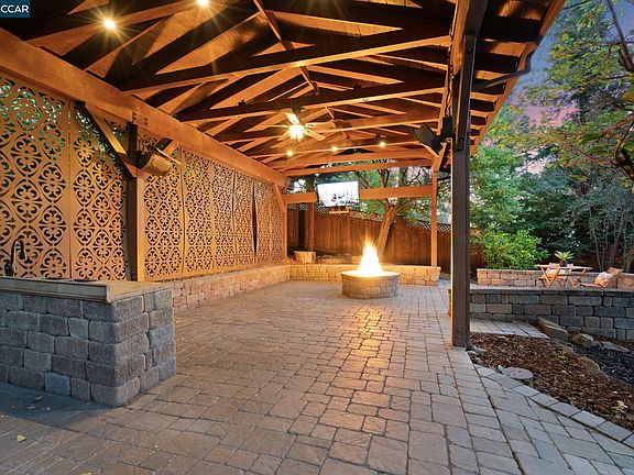 This stunning home, set on a private, gated 0.42-acre lot, features a beautifully landscaped backyard perfect for gatherings and relaxation. Its highlight is an expansive upper patio with a wet bar, outdoor TV, and fire pit, ideal for year-round entertainment. Inside, the inviting living room has hardwood floors, ample natural light, and a fireplace. The updated chef's kitchen includes high-end appliances, granite countertops, and a large island with gas cooktop and bar seating. The dining area provides built-in cabinets and access to the front deck. The main level hosts three bedrooms, each offering outdoor views and access; the primary ensuite includes dual closets and direct access to the hot tub deck. The upper bathroom has an oversized shower and separate bathtub. Downstairs, a sprawling primary suite features a walk-in closet, full bath, office nook, and direct patio access. The backyard, an entertainer's dream, boasts a pergola, grill area, custom pavers, and thriving rose bushes. Additional features include ample space for guest and RV/boat parking, secured by a gated remote entry. Located near highways, trails, top-rated K-12 schools, downtown Walnut Creek, and parks, this home blends luxury with convenience.