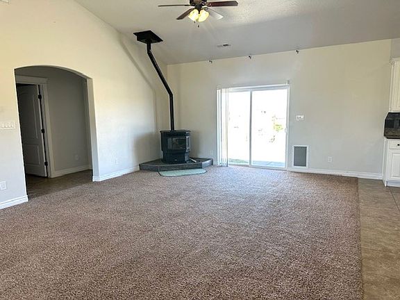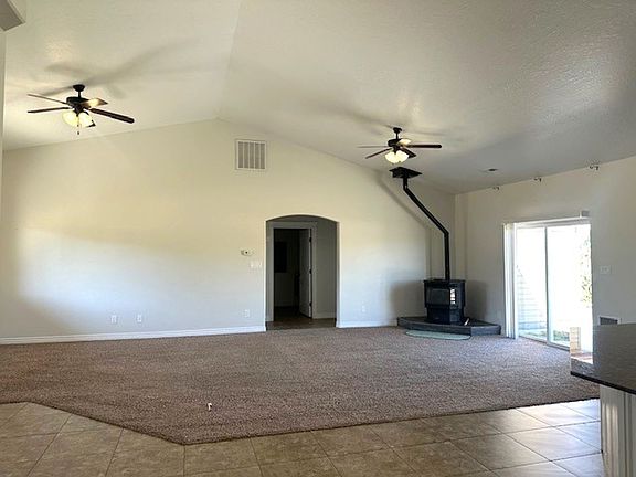 This Spacious 4 bedroom, 2 bath home has a fenced backyard, trees and grass. The 2-car garage is over 600 sq ft with plenty of room to park and for extra storage. Inside you will find a large main bedroom with a walk-in closet, the living room has pellet stove and central a/c, the beautiful kitchen comes with lots of counter space and cabinets and upgraded kitchen appliances. 1 year lease required. Tenant pays for electric, water, propane and trash removal. Pets upon approval with an additional deposit.