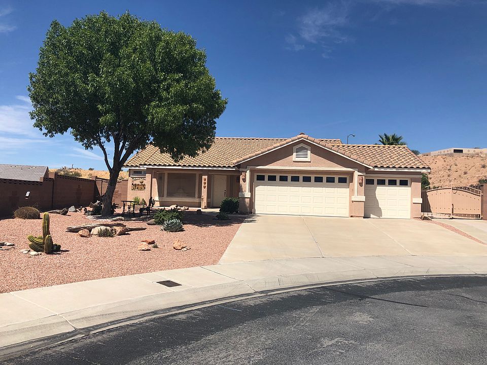 This home has features that are tough to reproduce. It is a good sized home that has been well cared for and is very attractive. Larger than average living area with a nice kitchen and a door entering the master bedroom from the patio. Three car garage for extensive parking and storage. Huge lot with fenced yard and RV parking. Wrap around covered patio around most of the back of the home. Extensive landscaping and block wall make this back yard one to desire. There is a storage building on the property. New a/c and heater, newly painted interior and exterior.and since the home is at the end of the street, there is minimal traffic.
